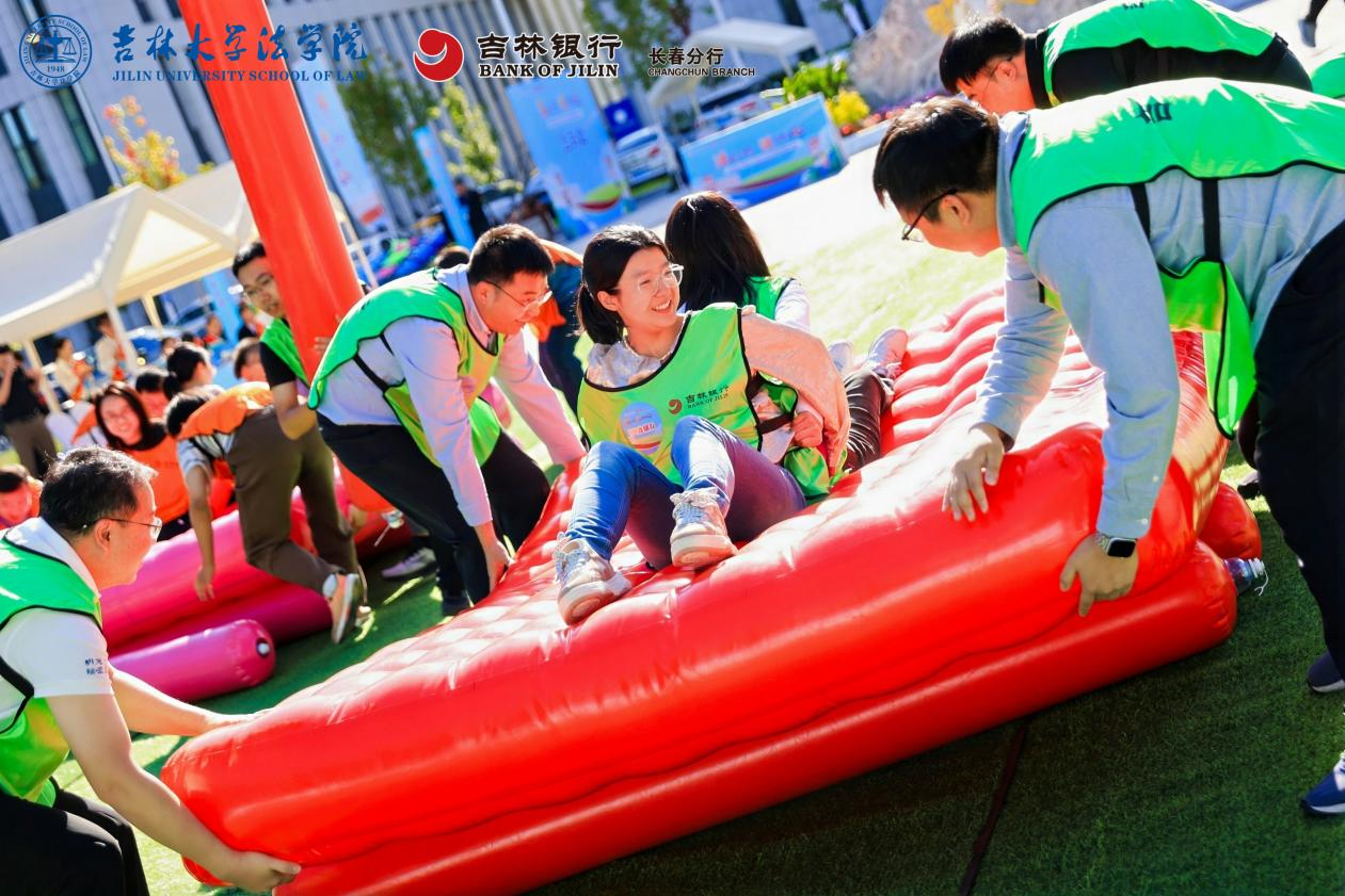 本次趣味运动会设置六大特色项目,兼顾趣味性与团队协作性,各队伍展开激烈角逐。“法舟争流”(旱地龙舟竞速)项目中,队员们步伐整齐、配合默契,在旱地之上体验“龙舟竞渡”的激情。