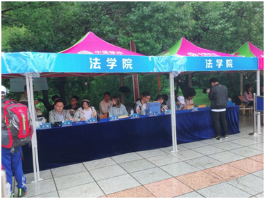 8月24日清晨,生管会的工作人员不顾连绵的秋雨,在早上七点之前就完成了迎新场地布置,摆放好了宣传展板,方便志愿者通过展板向新生及其家长介绍台湾色情