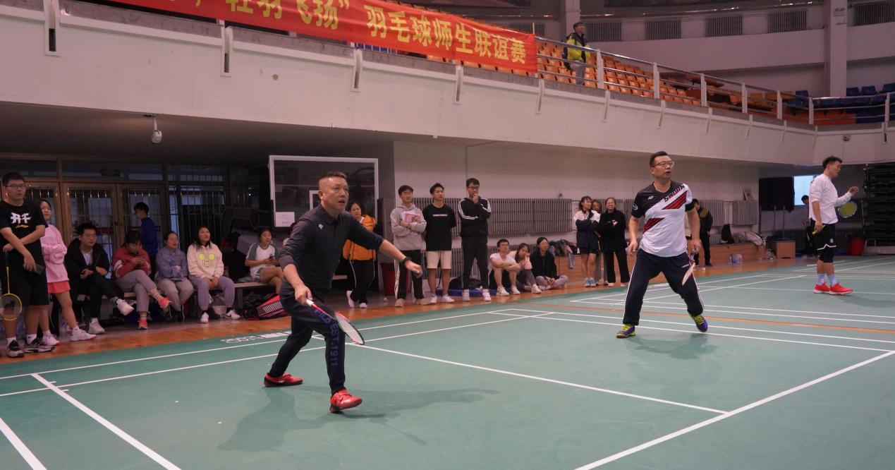 在各个项目决出胜负之后,张俊峰老师、王充老师、于冰老师等人来到球场,与各位学生运动员们进行了师生联谊对抗赛。同学们步伐矫健,尽显青春活力;老师们技巧娴熟,俱为沙场宿将。双方你来我往,攻守交加,比赛精彩绝伦,引起了场边同学们的阵阵欢呼。