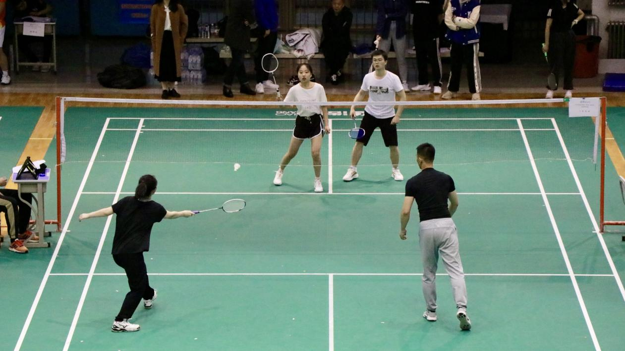 体育学院的四位运动员在赛场上挥洒汗水,奋勇拼搏,充分展示了体育健儿的青春风采,为在场同学们来了一场竞技性与观赏性兼具的表演赛。随后正式比赛拉开帷幕,本次比赛主要以羽毛球团体赛为主要赛事形式,包括了“男子双打”、“女子双打”、“混合双打”三类赛事。比赛共分三个阶段进行,第一阶段小组循环,每组取胜场次数多的前两名进入第二阶段比赛;第二阶段淘汰赛,由比赛八强选手晋级第三阶段比赛。第三阶段是半决赛和决赛,产生本次比赛的团体冠、亚、季军。