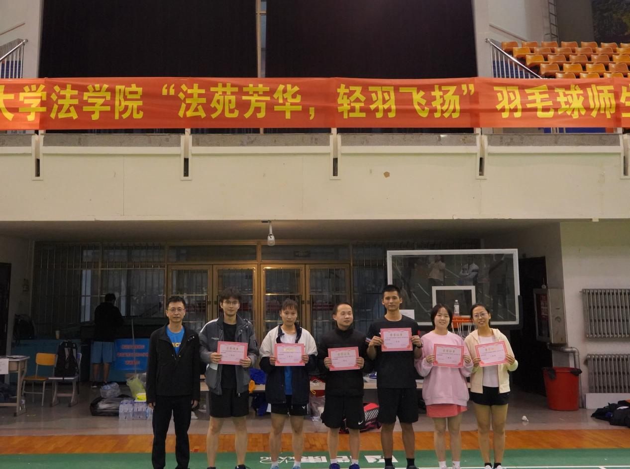 师生对抗赛后,进入闭幕颁奖环节,院党委副书记张俊峰老师、院长助理于冰老师和院研究生会执行主席崔炜同学分别为获得团体冠军、亚军和季军的运动员颁奖。