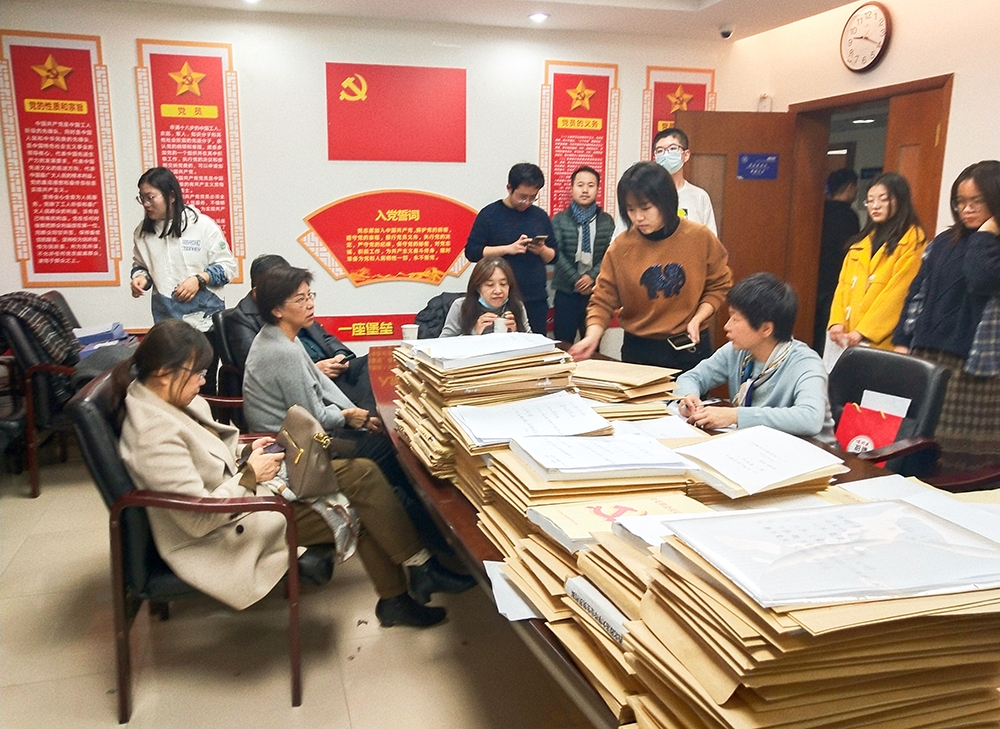 学工部许广华组织员、研工部费淑波组织员对所检查的本科生、研究生相关材料情况进行了反馈,肯定党员发展工作整体上细致到位,新生档案材料审查及毕业生组织关系接转工作能够有效落实,同时也对更好的完成党员发展工作中支部会议记录,支部会议讨论党员发展等细节工作提出了宝贵建议。