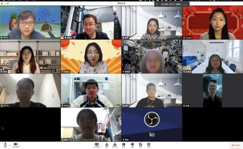 接着,支部全体党员轮流发言,分享在抗疫期间对于党员身份的认识和感悟。李方正同志担任北四公寓八楼的志愿者负责人,担负了大量的防疫工作,但他却说这只是一名党员应尽的责任,为集体服务是自己的光荣,希望大家多提意见,帮助他把工作越做越好。金虹伶同志担任北三公寓临时党支部党小组组长,正在按照要求开展系列活动,她推荐大家通过学习强国APP了解防疫知识和时事政策。高雪同志向大家推荐了复兴壹号APP这一线上学习平台,并推荐了影视作品《猎罪图鉴》。荆连元同志以“感谢”和“坚持”为关键词分享了心得,并主动要求参与防疫工作。方正亮同志结合自身隔离经历,表达了对党组织的深厚感情。张英泽同志号召大家合理安排学习生活,在寝室发挥模范作用。入党申请人高瑞也分享了防疫期间自己思想觉悟的进步。