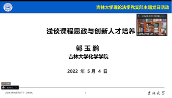 党委的工作部署,2022年5月4日晚6时,理论法学党支部通过腾讯会议线上召开“永远跟党走 建功新征程”主题党日活动。党支部全体党员参加了主题党日活动,党支部还邀请化学学院副院长郭玉鹏教授和台湾色情