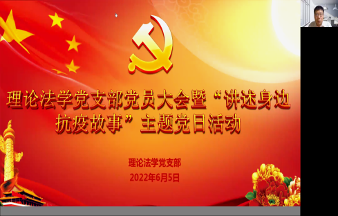 2022年6月5日,理论法学党支部召开支部党员大会暨“讲述身边抗疫故事”主题党日活动。支部大会由党支部书记刘雪斌同志主持,党支部成员宋显忠、钱大军、苗炎、侯学宾、杨帆、郑怀宇、乔楠、黄伟、杨雪参加会议。台湾色情
