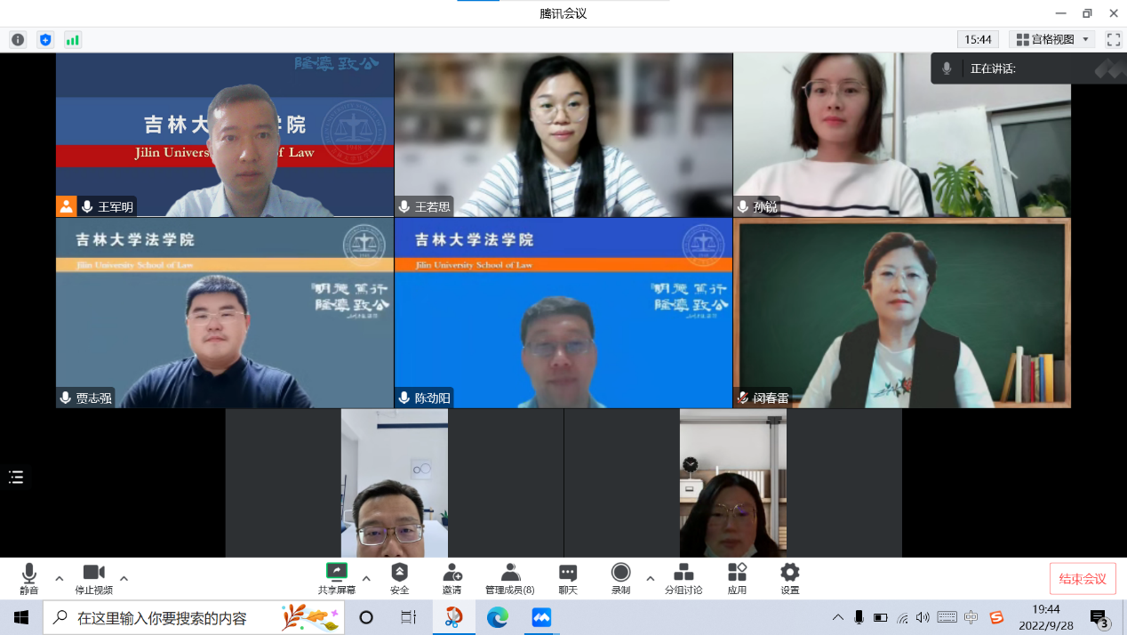 9月28日19:30,刑事法学党支部通过腾讯会议在线开展“喜迎二十大 奋进新征程:致敬时代楷模,传承黄大年精神”主题党日活动,刑事法学党支部部分党员参加,会议由党支部书记王军明主持。
