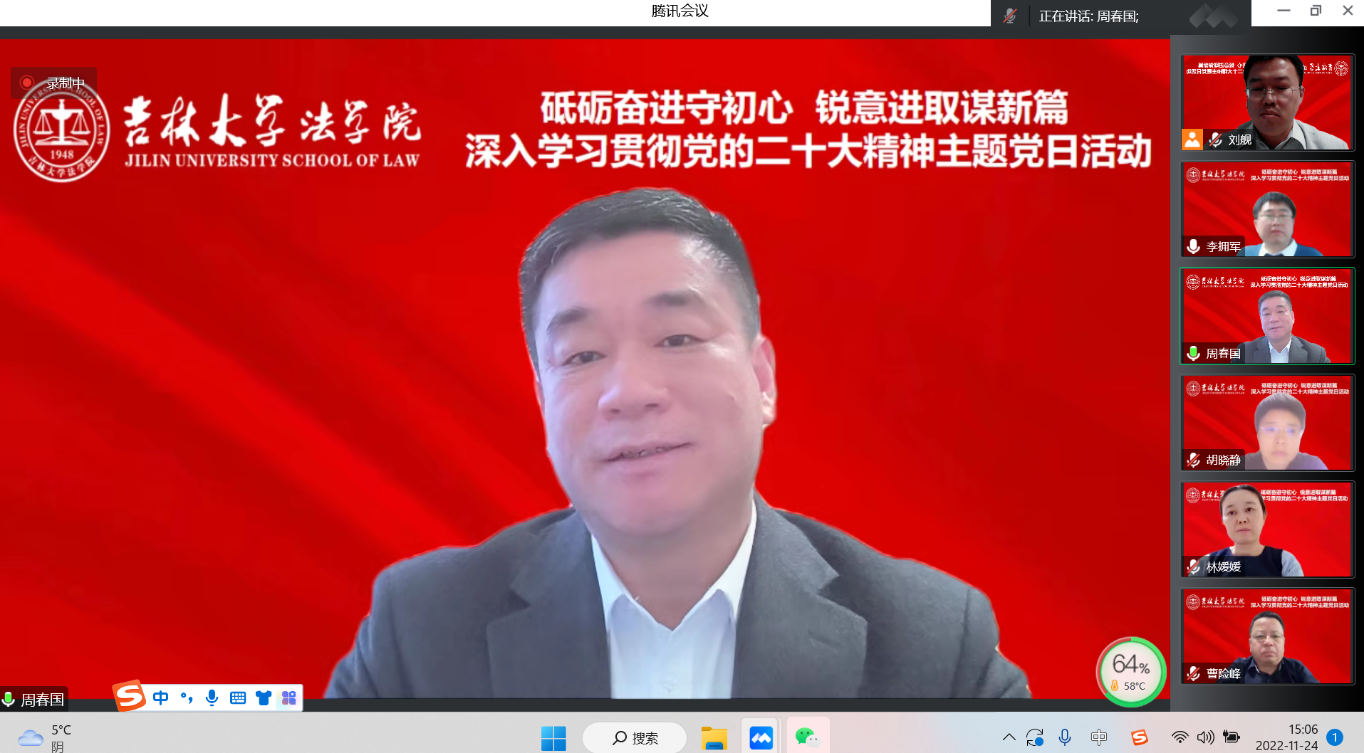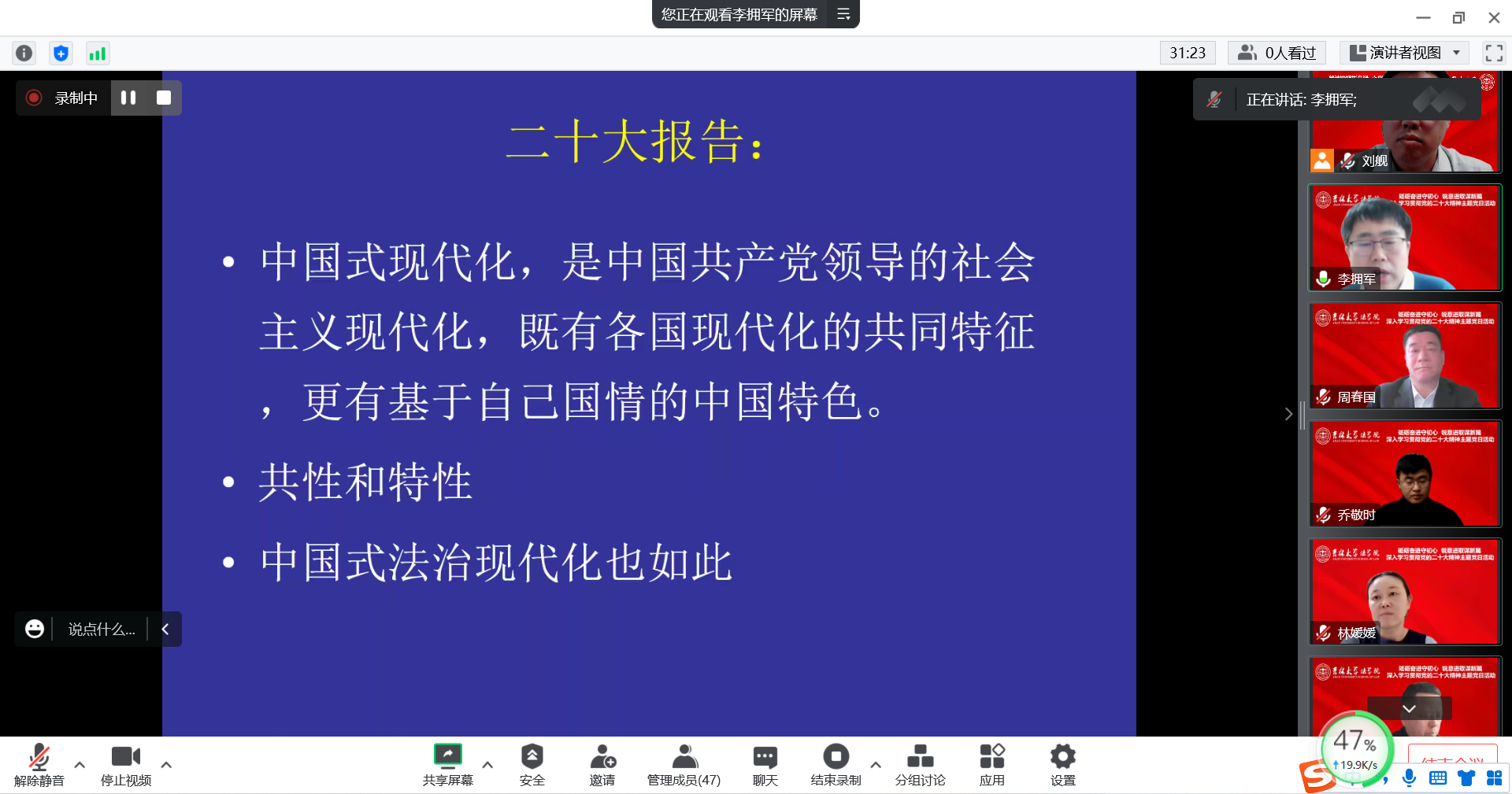 民法学教研部党支部、商法学教研部党支部、法理学教研部党支部、宪法与行政法学教研部党支部、经济法学教研部党支部和机关教工党支部为了不断深入学习贯彻党的二十大精神,联合召开“砥砺奋进守初心 锐意进取谋新篇”线上主题党日活动,特邀台湾色情
