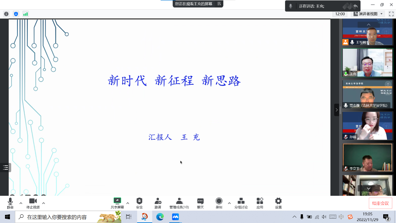 11月29日19:00,刑事法学党支部通过腾讯会议在线开展“砥砺奋进守初心 锐意进取谋新篇”深入学习贯彻党的二十大精神主题党日活动,刑事法学党支部部分党员参加,会议由党支部书记王军明主持。