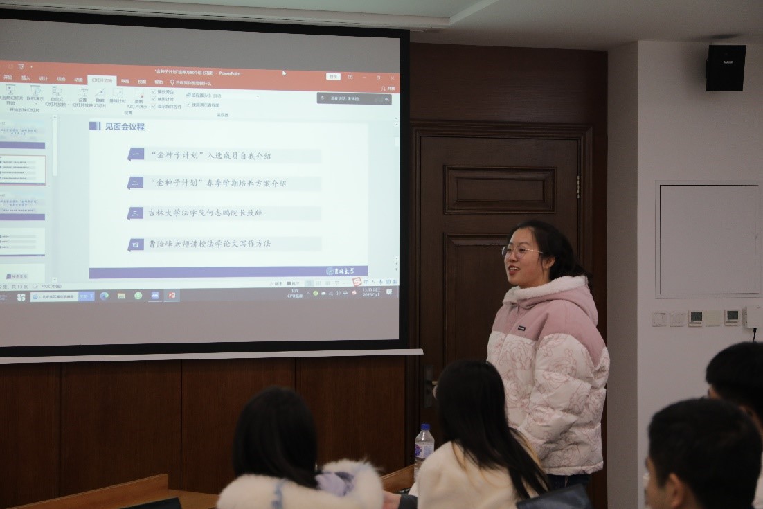 院长何志鹏教授为“金种子”计划成员见面会致辞。他指出,学院发展的关注点在于人才,竞争力也在于人才,但“金种子”计划不仅仅致力于为吉大法学的发展创造新鲜血液,更希望能够为法学理论发展、为中国法学研究培育优秀人才。学院将始终关注“金种子”计划的发展动态,关心每一个成员的发展诉求,并为“金种子”计划提供各类支持。期盼各位成员能够在“金种子”计划中有所收获、有所成长,在学术研究中敢于创新、逆势而上,有朝一日成为中国法学界的栋梁之才。