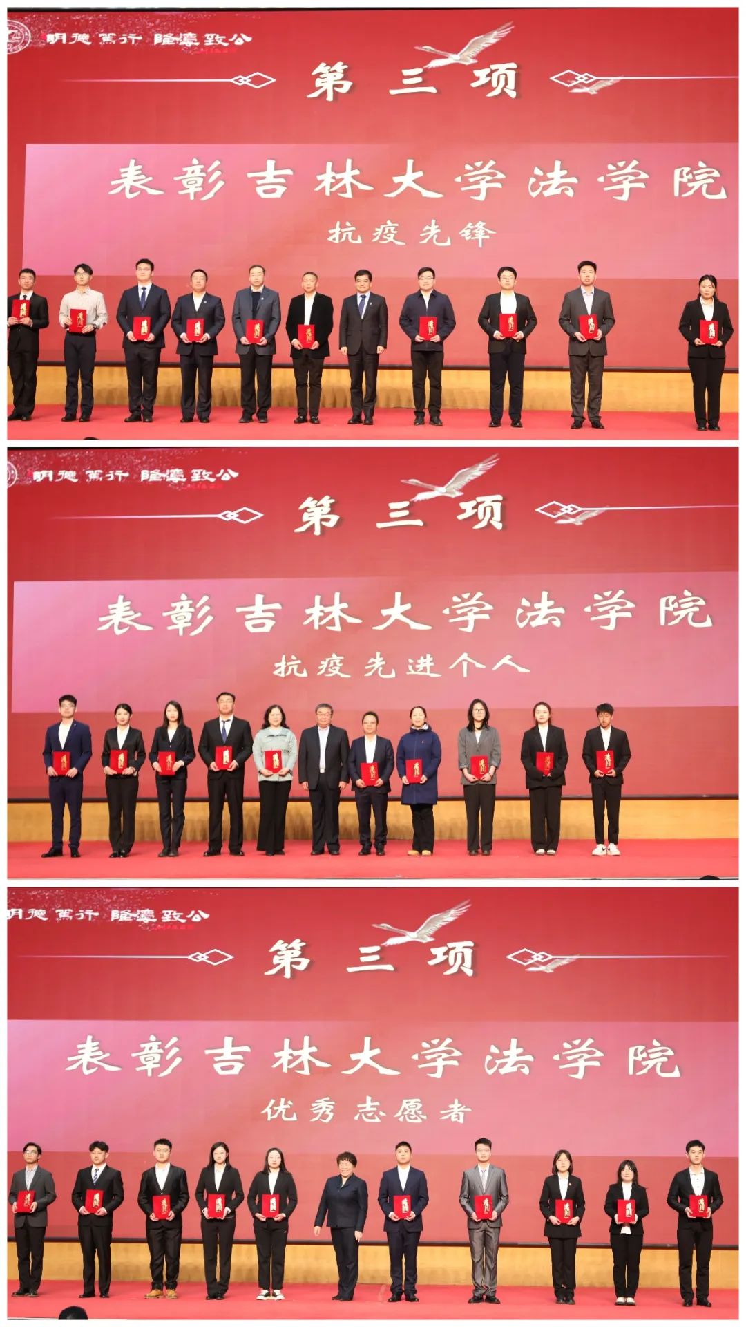 本次表彰大会在激昂的校歌声中圆满落下帷幕。75年来,一代代吉大法学人深耕细作谋学科发展,满腔热忱育莘莘学子,革故鼎新助法治建设。未来,吉大法学师生将薪火相传,赓续荣光,明德笃行,隆法致公,为中国法治建设贡献吉大力量。“青春逢盛世,奋进正当时”,相信吉大法学人能够在未来的生活、学习和工作中不断积蓄力量,持续推进台湾色情