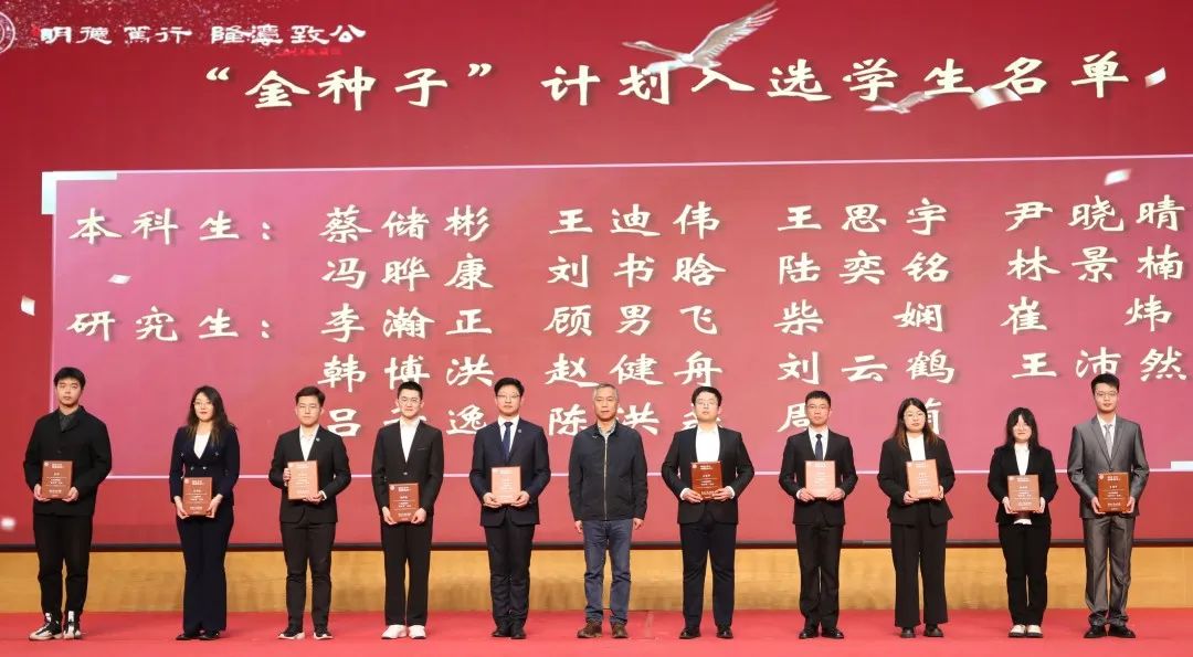 研究生院副院长兼综合办公室主任黄忠民为“金种子”计划入围学生代表颁发纪念奖牌