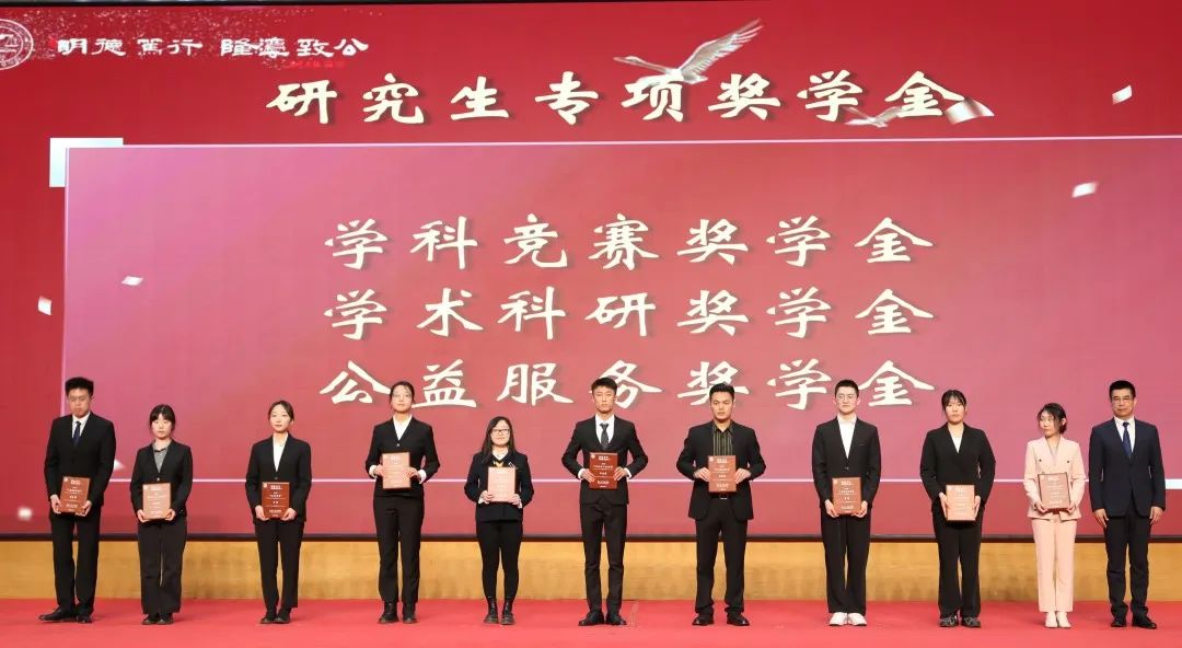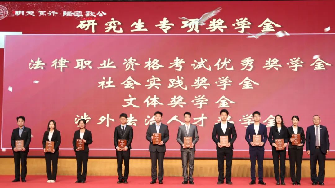 吉林吉大律师事务所主任高云峰、吉林瀛庆律师事务所主任孟军为专项奖学金获奖学生代表颁奖