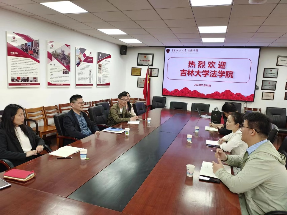 2023年5月22日,调研团队前往华东政法大学,与华东政法大学法律学院党委副书记汪靠斌、团委书记胡敬雪、辅导员冯元新、彭飞、薛洁开展座谈。会议上,华东政法大学法律学院分享了其学生培养特色:以专业学习为主,注重本科教学;同时开展课程以外的专业活动,如崇法讲堂、名师读书会、专项比赛辅导讲座;此外,学院还注重学生的身心健康、素质发展,安排心理谈话、文体训练活动和传统文化教育。针对本科生就业难题,法律学院的解决方法是集中学生的实习时间,搭建实习平台,与法院、检察院、律所签订长期合作协议,为本科生提供更多实习就业机会。