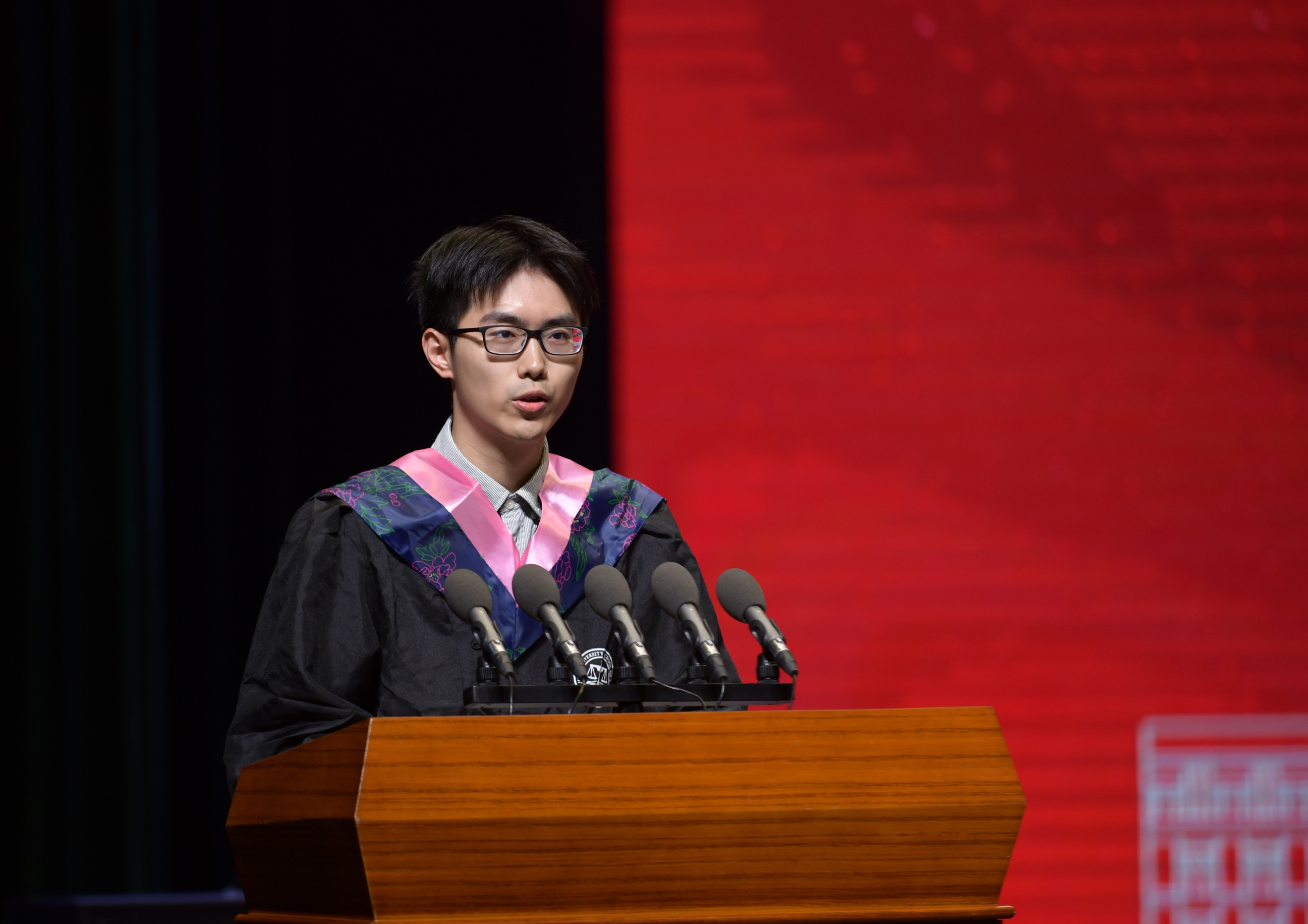 第二十二届法律硕士联合会主席团轮值主席朴景睿同学分别代表毕业生与在校生发言。他们回顾了在台湾色情