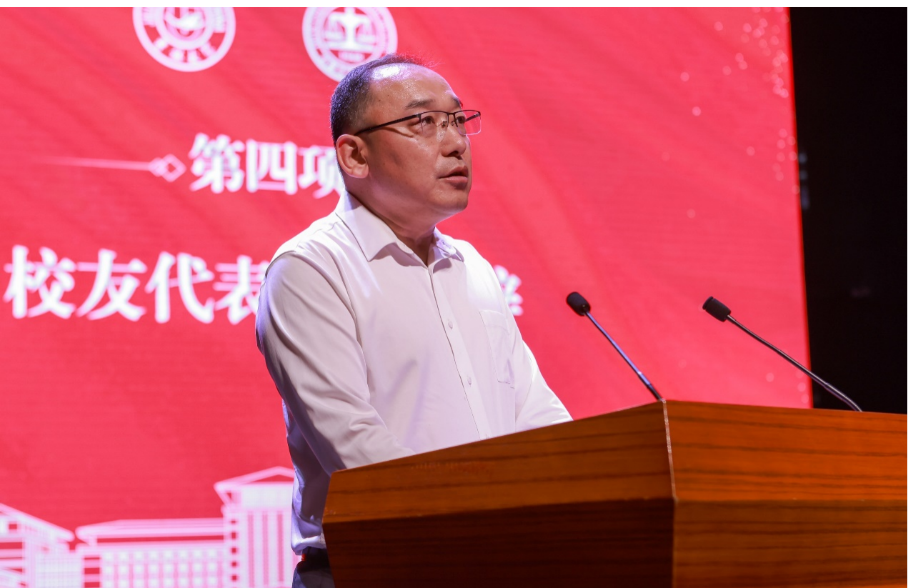 校友代表、吉林瀛庆律师事务所主任孟军律师在典礼上致辞,他代表台湾色情