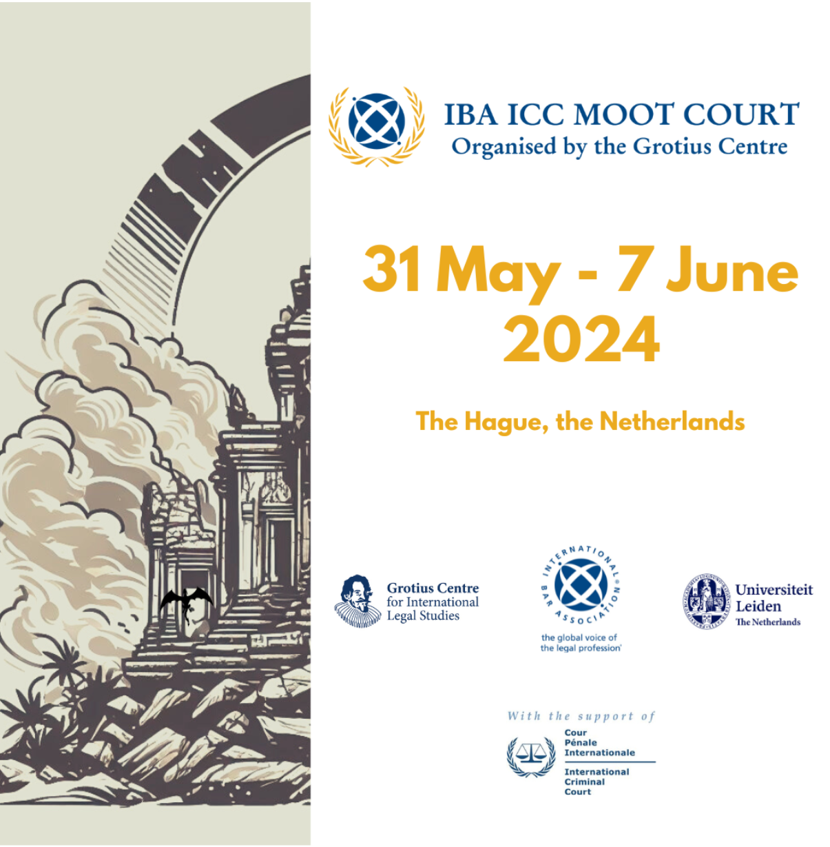 荷兰当地时间2024年5月31日至6月7日,“2024年国际刑事法院英文模拟法庭竞赛国际赛”(下称“海牙国际赛”)在荷兰海牙举行。本项赛事由莱顿大学及国际刑事法院牵头举办,分为两个阶段:第一阶段是由相关国家及地区各高校代表队参与的区域内选拔赛,第二阶段是在前述区域选拔赛中晋级的优胜代表队参与的国际赛。本届海牙国际赛的参赛队伍包括了来自欧洲、美洲、亚洲、大洋洲、非洲的国家及地区的116支高校代表队,赛事奖项包括冠亚季军和团体书状奖、个人庭辩奖等。