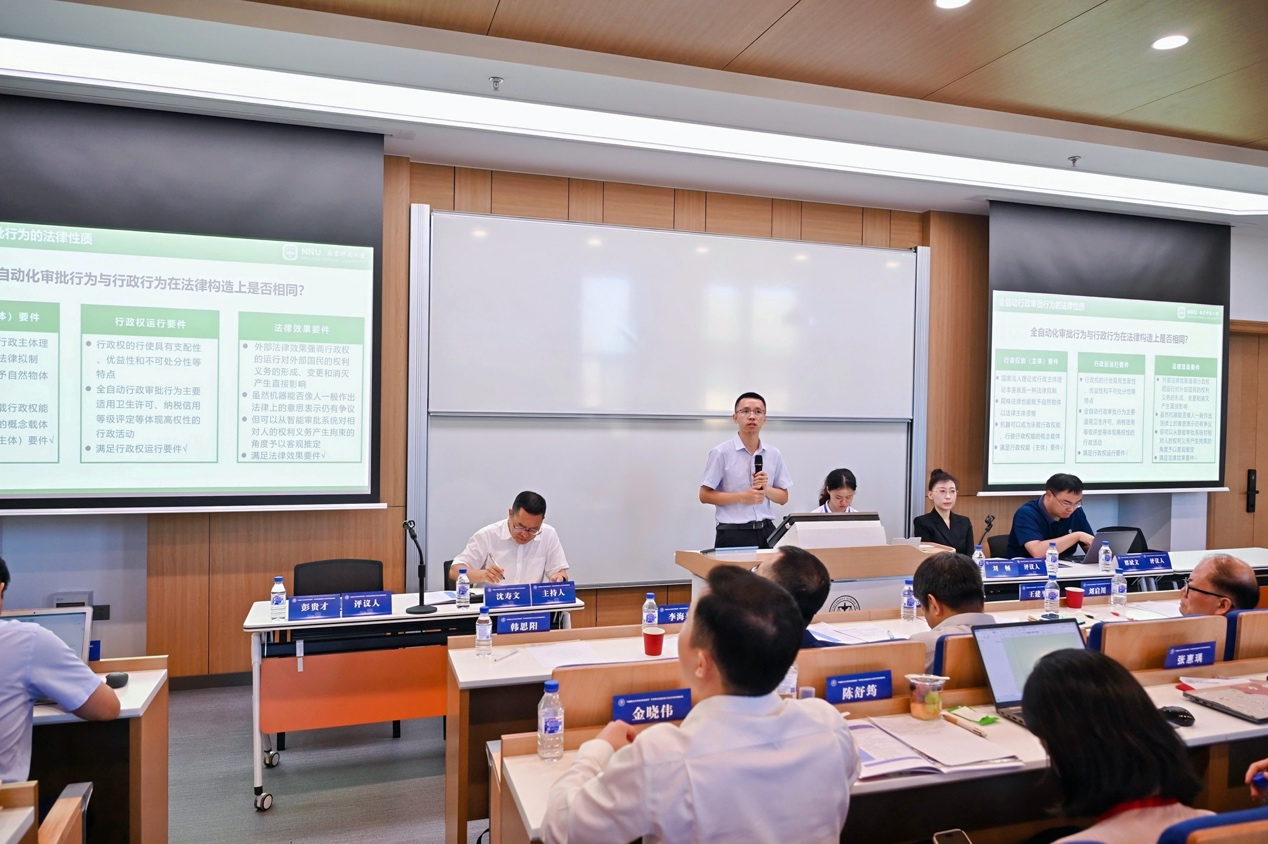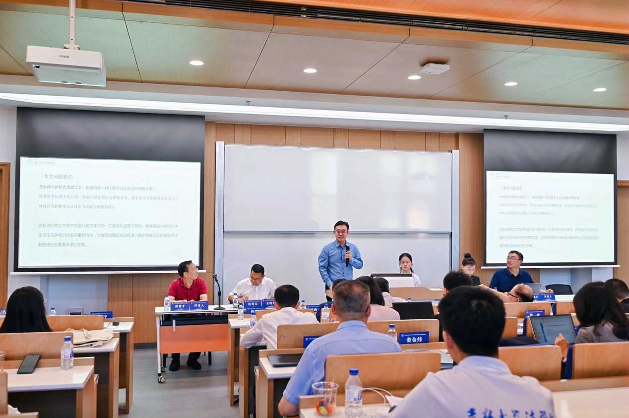 教授王建平在以“中国灾害法学的创建”为主题的发言中,从学术缘由、灾害法学概况等角度阐述了中国灾害法学的创建思路。上海师范大学哲学与法政学院副院长、教授韩思阳在“行政复议实现化解争议主渠道功能定位的内在逻辑与制度呈现——兼评新〈行政复议法〉》”的主题报告中提出,当下行政复议的首要定位仍有争议,提升复议公正性不能靠司法化或仅靠“复议双被告”制度,还应充分调动复议机关的内部需求,激活复议与诉讼间的良性竞争,对新《行政复议法》的解释评价应以制度内在逻辑为基础。浙江立法研究院、浙江大学立法研究院博士后、助理研究员娄金炜在以“论跨部门协同的合法性判断:学理认知与标准构建”为主题的发言中,主张现有行政行为违法性继承理论应用于合法性判断时在理论预设、适用场域、行为形式等有局限性,可将跨部门协同的法治要素划分为基础要素与关联性要素,构建以基础要素合法性、关联性要素合法性及衡量机制为核心的三阶合法性判断标准。南京师范大学特岗副研究员、中国法治现代化研究院研究员王由海在以“数字时代全自动行政审批行为研究”为主题的发言中,提出全自动行政审批行为成为数字行政行为法的重要研究内容,需通过技术性正当程序赋能公民数字权利、通过算法问责程序构建数字法律责任体系,推动行政审批数字化与法治化的系统集成。重庆大学台湾色情