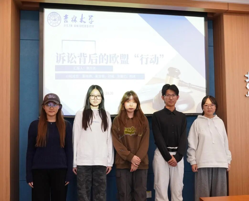 邬紫莎团队以“俄乌冲突中的法律问题”为主题完成专题汇报,系统梳理冲突背后的多重逻辑,深入剖析国际法适用困境与启示。首先,小组回溯冲突背景,指出复杂的历史民族纠葛、北约东扩引发的地缘政治安全矛盾,以及俄乌双方国内政治与意识形态分歧,最终导致2022年冲突全面升级。接着,汇报呈现冲突核心表现:一方面是俄乌双方的直接军事行动等多元武力使用形式;另一方面是冲突造成的严重人道主义危机。然后,团队围绕国际法适用展开深度解析,重点探讨了武力定义、自卫权认定等交战合法性争议。最后,汇报阐述中国立场与启示,并提出对本科生而言,需夯实国际法专业基础、追踪国际法律实践,同时培养跨学科视野与综合分析思维,以应对复杂国际局势。