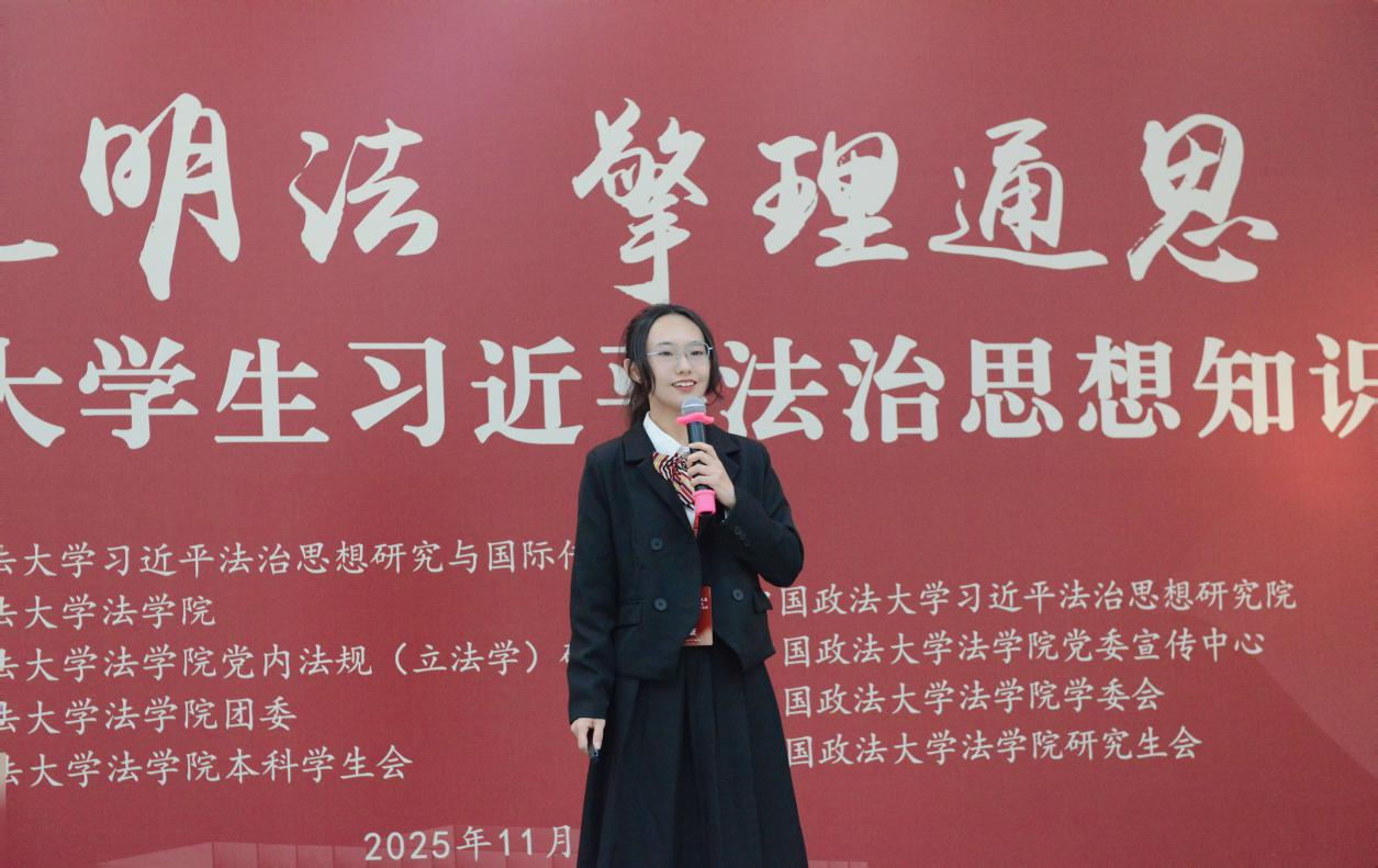 本次竞赛正值习近平法治思想提出五周年重要节点,赛事规格高、覆盖广,吸引全国高校广泛参与,马克思主义理论研究和建设工程重点教材《习近平法治思想概论》首席专家张文显教授出席活动并作重要讲话。他强调:“青年学子要做习近平法治思想的坚定信仰者、积极传播者、模范践行者,以竞赛为契机推动政理、法理、学理、道理内化于心、外化于行。”这一论述精准契合赛事“以赛促学、以赛促思”的核心宗旨,更凸显了竞赛作为思想引领与育人实践重要平台的时代价值。