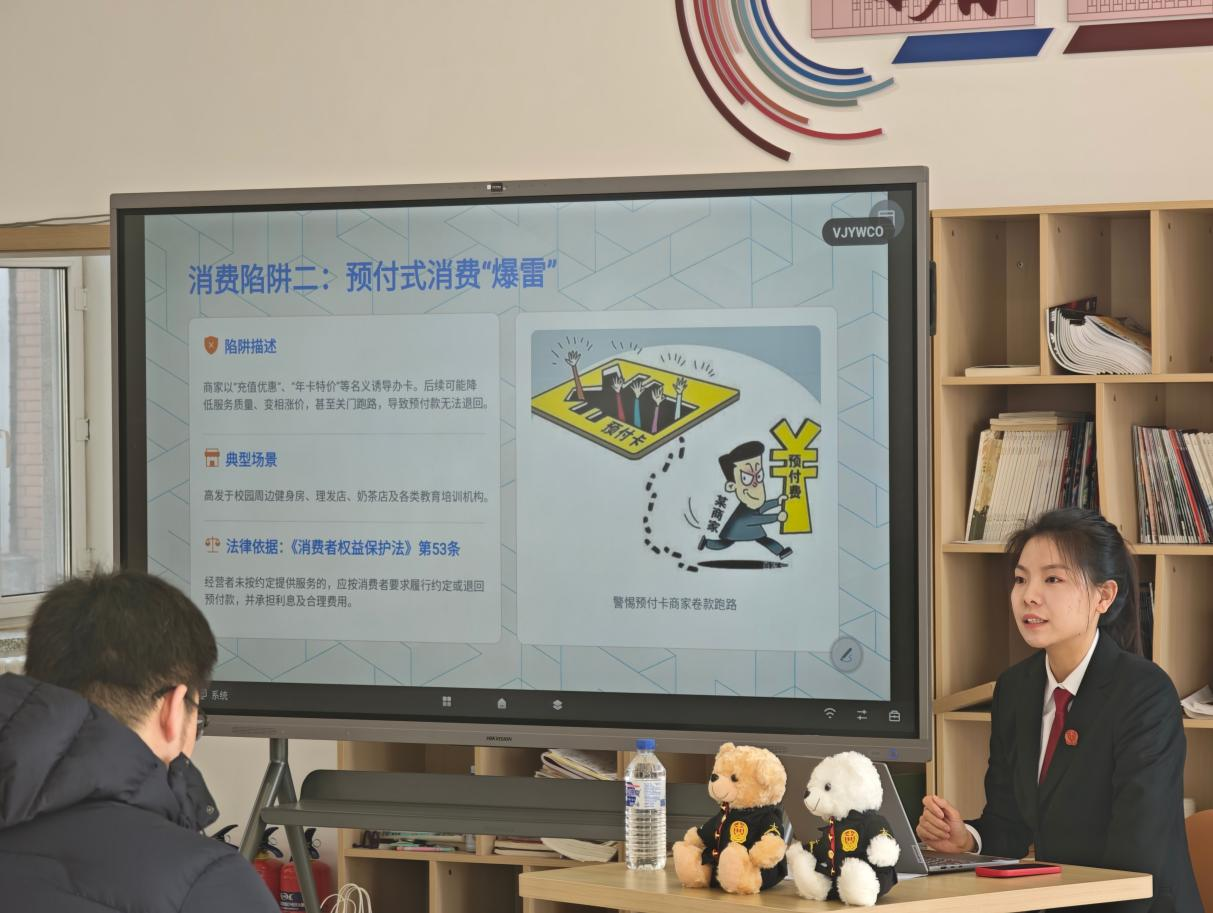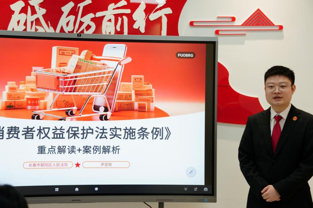 在新民社区,长春市朝阳区人民法院尹昱皓、冯世佳法官以“医疗美食,关乎你我”为主题,围绕《消费者权益保护法实施条例》展开深入解读,结合医疗美容、食品药品安全等领域的司法审判实务,通过以案释法的方式,帮助同学们识别消费陷阱、掌握维权方法,让法治为消费安全保驾护航。