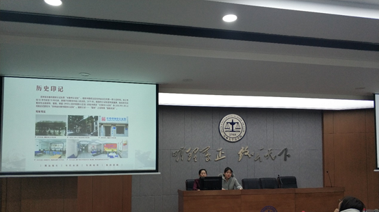 活动伊始,公证员首先向大家介绍了国安公证处的发展历史,帮助同学们了解我国公证事业在不同阶段的发展状况。随后,公证人员又以小动画的形式向师生们介绍了公证处的工作流程、工作范围与工作规范等,全面地展现了公证工作的各个环节。