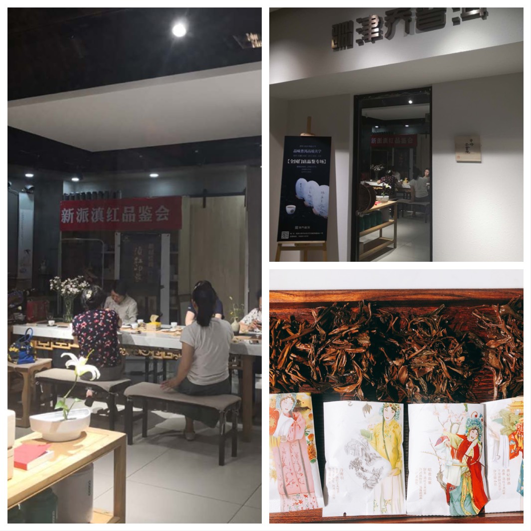 妇委会胡晓静主任的带领下,我们来到了位于吉福国际茶城二楼的初墨茶学院。店主韩丽双女士是爱茶之人,热心组织公益茶会以传播茶文化。她的茶室古朴典雅,一如其人。韩女士为此次活动做了精心准备,投在白墙上的PPT页面精美、灵动,架子上摆放的各种茶叶散发出沁人香气,看似随意的摆设显示出独具匠心的精致。今天的主打品种是滇红茶。在学习了滇红茶的基本知识之后,特别是了解了“四大名旦”系列滇红茶的不同特点之后,韩女士亲手为大家冲茶,同时引导大家通过观茶汤、闻茶味、品茶香去体会每一杯茶的独特之处。