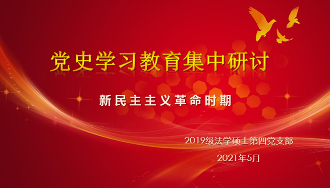 2019级法学硕士第四党支部于东荣大厦会议室开展了以“新民主主义革命时期”为专题的党史学习集中研讨活动。会议由支部书记李昕冉主持,支部党员和发展对象出席并参与了这次活动。