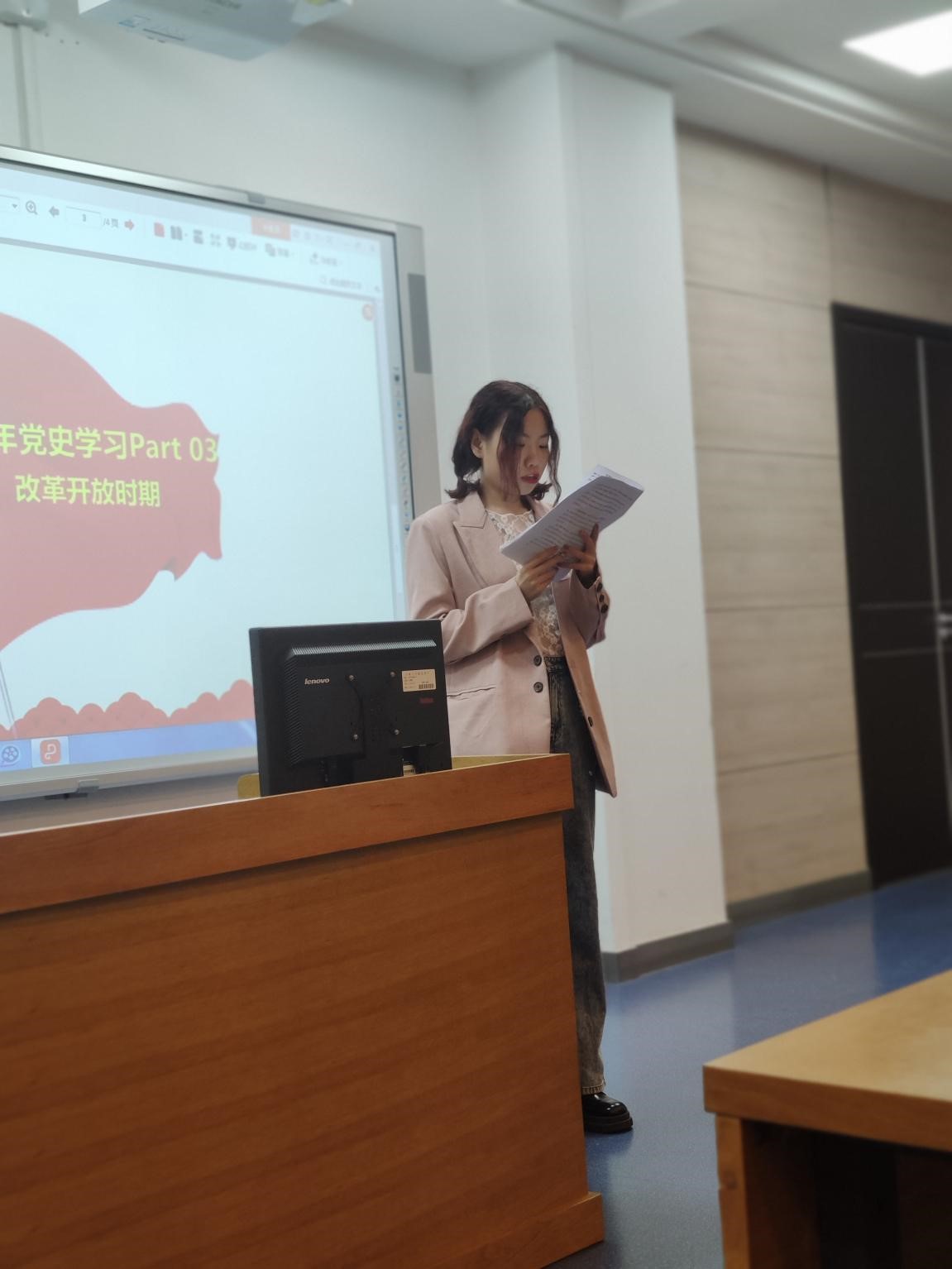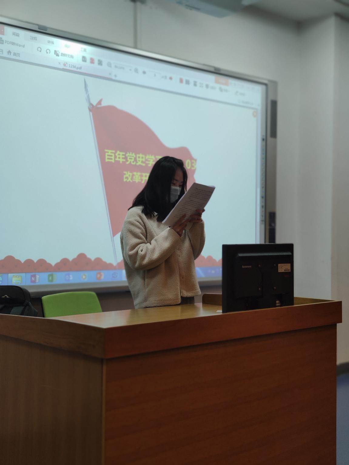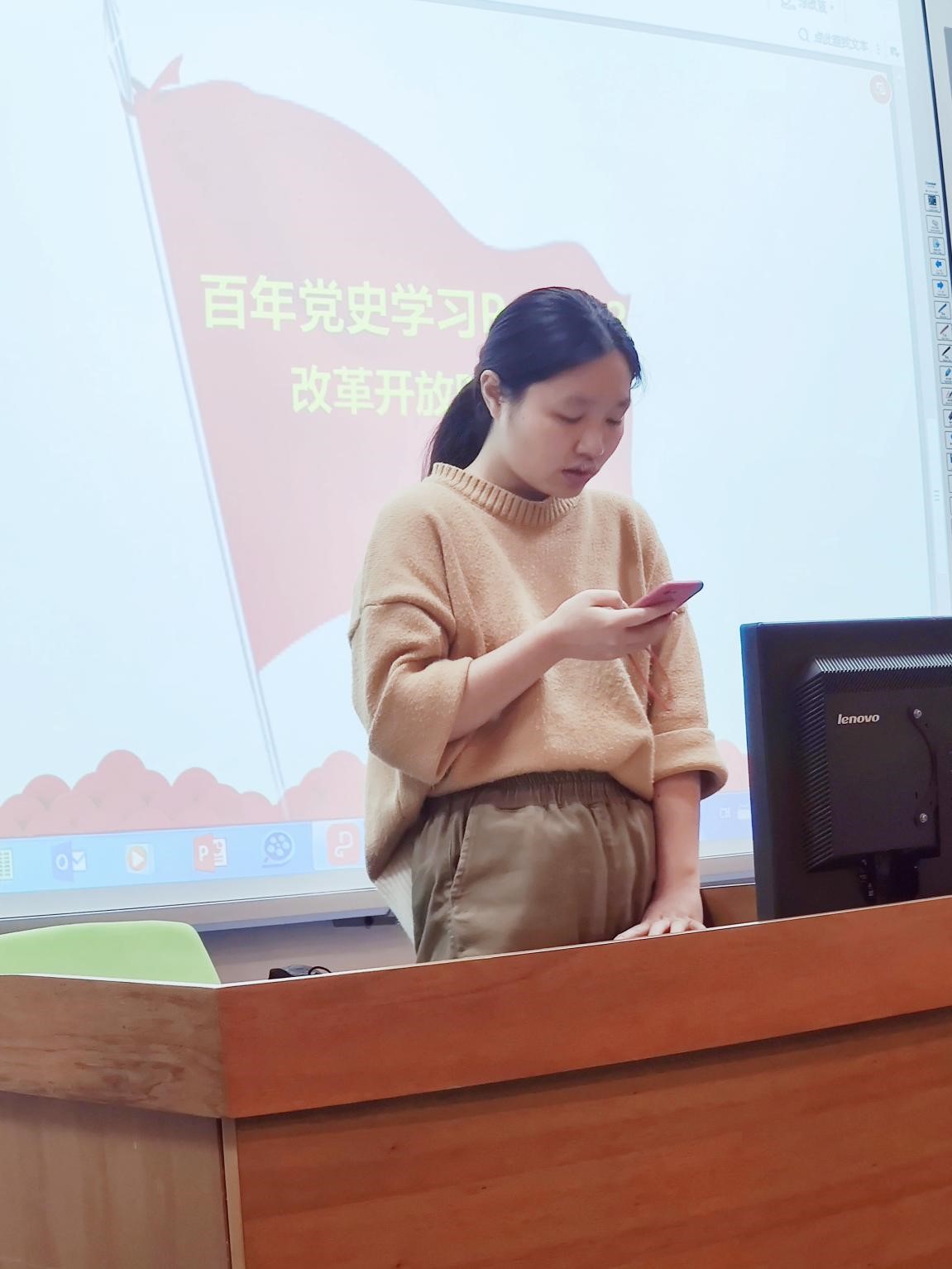 在交流和讨论环节,党员代表和发展对象向大家介绍了改革开放时期的重大事件和决策,并同时发表了自己的学习心得。