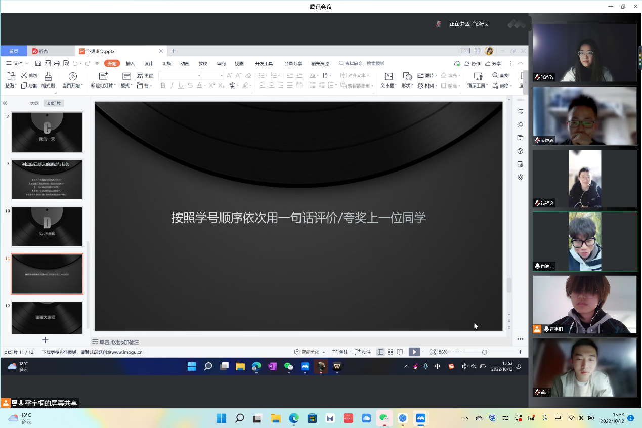 于10月12日开展了以“心灵沟通——相亲相爱的一家人”为主题的线上新生团体心理辅导活动,学生朋辈心理辅导员霍宇桐主持活动。