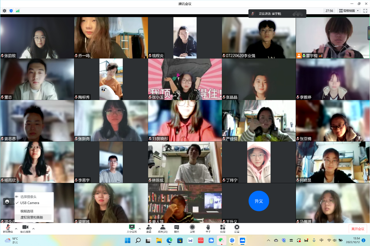 第一环节,主持人带领同学们进行简易版mbti人格测试和摇摆时钟热身活动。在人格测试阶段,同学们纷纷找出自己的人格代称,展开讨论,使大家很快拉近距离,加深对彼此的印象。在摇摆时钟阶段,同学们跟随主持人的示范动作,将双手平展于屏幕前,当主持人念出“嘀”字时,大家手指向左,当主持人念出“嗒”字时,大家手指向右。随着主持人的行动口令越变越快,同学们的动作出错率也越来越高,面对自己的“手忙脚乱”,有的同学忍不住笑了出来。简单的热身小活动既让活动气氛热闹起来,让大家放下拘束,也让大家的身体和大脑迅速动起来,锻炼了同学们的手脑协调能力。