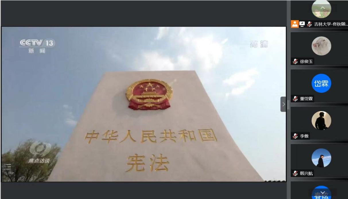 观看视频过后,党支部成员就本视频的主题内容进行热烈而深入的讨论。党员崔春铉从法治建设的重要性出发,认为在法治轨道上全面建设社会主义现代化国家,有利于把我国制度优势更好转化为国家治理效能,实现党执政兴国、人民幸福安康,有利于实现国家的长治久安。党员董岱霖从法治和人民关系的角度分享学习感悟,表示唯有牢牢树立为人民服务的理念,真正想人民之所想,为人民群众解决实际问题,我们的法治建设才能取得更大的成就。党员窦梦璇表示,作为一名法学生,应当更加坚定新时代中国特色社会主义法治道路,以实际行动弘扬社会主义法治精神,练就过硬本领,为实现依法治国奉献自己的青春和力量。