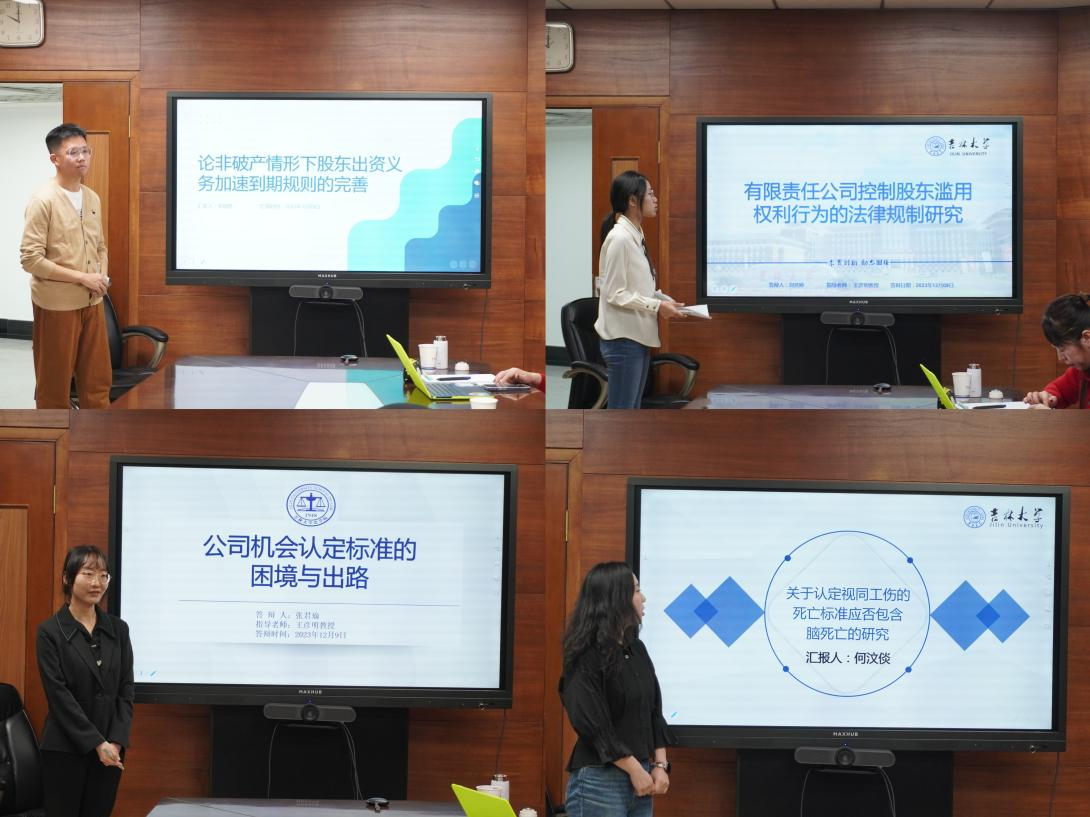 栾福桥同学的题目是“论非破产情形下股东出资义务加速到期规则的完善”,以折衷说为基础,将债权产生的原因纳入规则适用的审查范围,根据债权产生原因选择性适用该规则,加以探讨如何平衡公司债务与股东合法的期限利益。