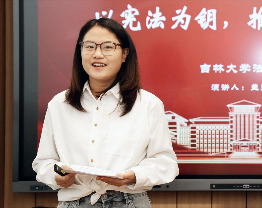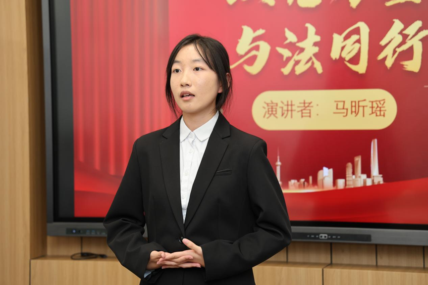 9.李知润同学演讲《当青春与宪法共鸣》:分享本科室友因家庭变故获国家助学贷款继续学业的故事,诠释宪法第46条受教育权的实践温度,展现宪法作为“安全网”与“灯塔”的民生价值,情感真挚,引发共鸣。