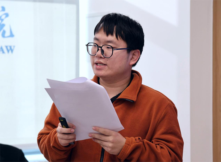 5.王建吉同学以《宪法中的经济制度理念与实践》为主题进行文献报告:从文献分析为切入点,结合其他学者的优秀研究成果,探讨宪法经济制度与公司法的协同发展,聚焦共同富裕、市场主体平等保护等核心议题,展现了扎实的学术功底。