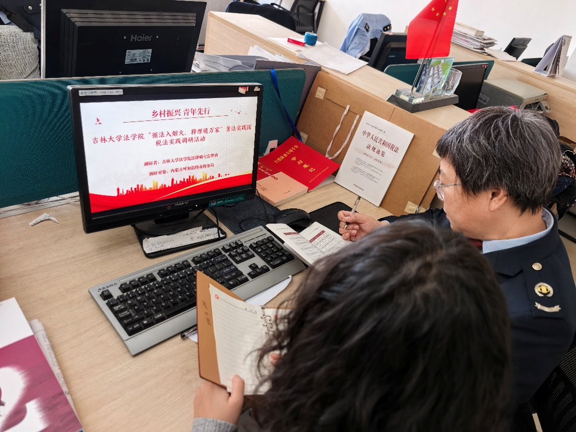 2月23日,实践团成员走进呼和浩特市回民区税务局开展调研。团队深入了解该局针对多民族聚居特点推出的蒙汉双语税法手册以及“青·税助行”志愿服务队,重点关注适老化专窗和“首违不罚”制度落实情况,感受柔性执法温度。此外,团队学习调研了海亮广场停车场“支付即开票”模式,该模式自2025年5月至12月自动开具数电发票超40.5万份,有效规避法律风险,彰显税收法治在保障民生中的独特价值。