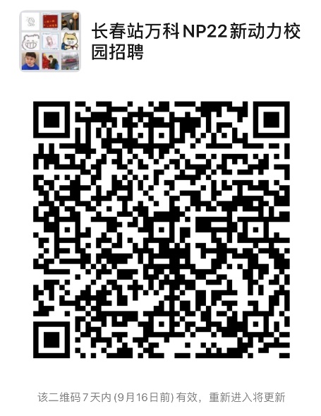 有任何关于校招的疑问,请扫码加入“万科NP22新动力校园招聘长春站交流群”,HR会在群内为大家进行详细解答: