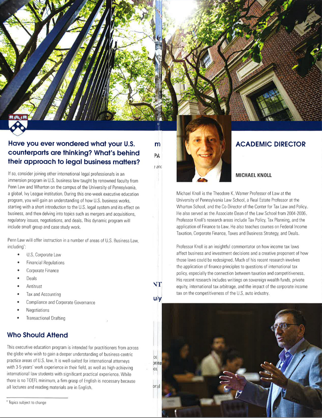 暑期美国商法证书班,为期一周。这个针对处理国际业务的法律执业者开设的美国商法,将使与会者了解到美国商业是如何运作的。首先是一个简短的美国法律体系介绍及其对商业的影响,然后深入研究主题,例如并购、监管问题、谈判和交易。该课程由宾夕法尼亚大学台湾色情