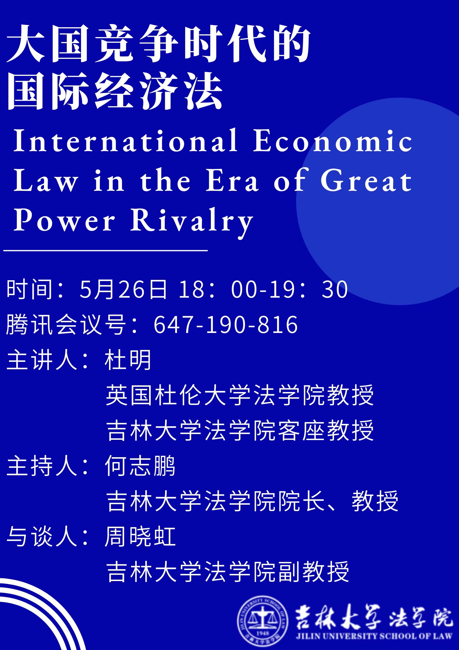 讲座题目:大国竞争时代的国际经济法