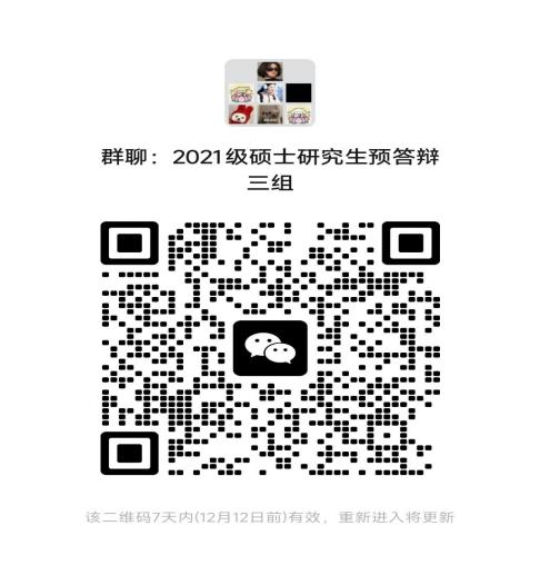 博士开题、预答辩初拟于2024年1月7日(周日)进行,请参加开题、预答辩的博士研究生扫码进入微信群。