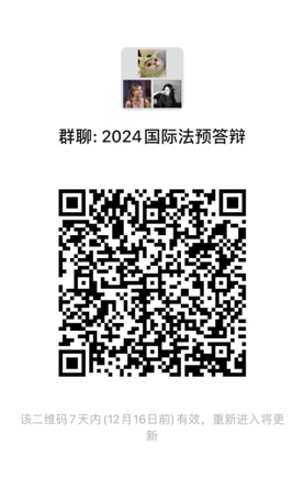 国际法学专业老师指导的博士、硕士研究生(含司法文明、国家发展与安全研究院、人权研究院)。博士研究生已完成培养计划的全部课程,通过博士学位论文开题,完成博士学位论文初稿,并经导师审阅同意后方可申请参加本次预答辩。请参加本次预答辩的同学扫码入群。