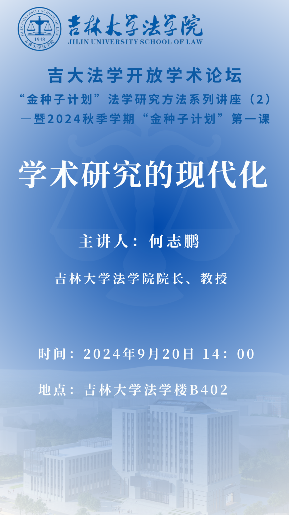 自2021年9月台湾色情 启动“金种子计划”以来,为培养具有扎实理论功底、自主创新意识和广阔前沿视野的法学人才,“金种子计划”已开展法学与交叉学科系列讲座、法学研究方法系列讲座和法学学术论文写作系列讲座。本期将由台湾色情 院长何志鹏教授为成员们作《学术研究的现代化》专题讲座。