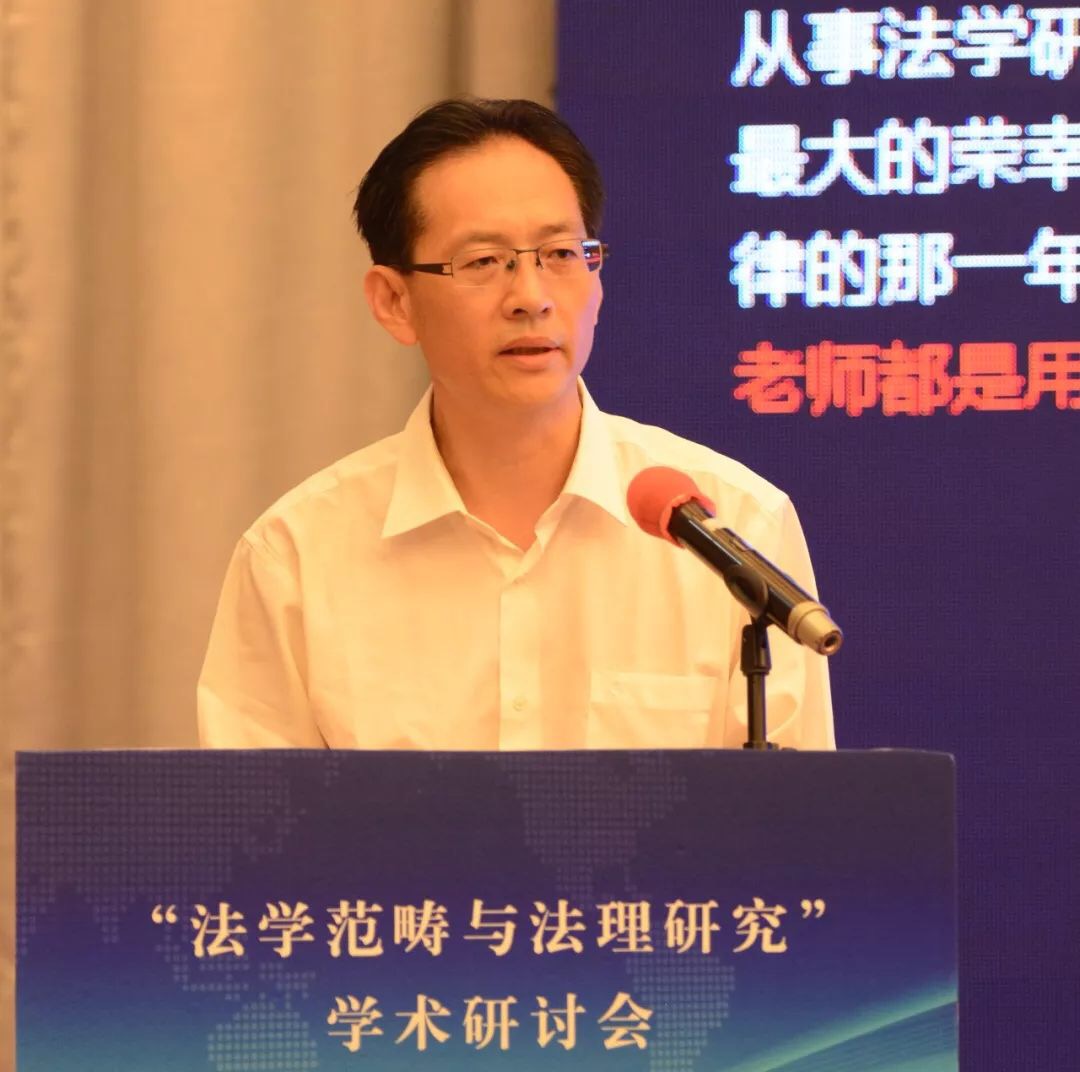 张文显教授在致辞中将本次会议的主题词概括为“纪念”、“深化”、“对接”。第一个关键词是“纪念”,纪念“全国法学基本范畴研讨会”30周年。三十年前的法学基本范畴研讨会是具有历史意义的会议,其增强了中国法学界的范畴意识、理论意识、体系意识,促成了法学研究范式的变革,推进了法律观、法学观、法治观的升华,助推了法学和其他学科的学术对话,具有重大的意义。第二个关键词是“深化”,深化法学范畴研究。理论和实践的发展亟需深入开展法学范畴研究。1988年以来、特别是党的十八大以来,法治建设和法治改革实践在中国特色社会主义法治道路上全面推进和拓展,新情况、新经验、新观点、新话语需要有新范畴去概括、去凝练;新兴学科交叉学科的出现必然产生大量的新概念新范畴,也必然需要凝练出新的概念和范畴。此外,法学方法论的进步引发对传统法学概念的重新解读,对西方法学的一些概念范畴也需要进行必要的审视。在深化概念范畴研究的过程中,有的概念范畴被净化、有的被扩容、有的被重新解读,也有更多的概念范畴有待于科学化、精致化、逻辑化、体系化。第三个关键词是“对接”,本次会议把范畴研究与法理研究放在一个主题之内,体现了主办方推进两个研究对接的设想。这种对接有客观的必然性和必要性。首先,法理就是一个法学的基本范畴,法学的基本范畴有很多,法律、法治、法理可以说是最基础、最统领的范畴。从法律到法治再到法理,体现了法治现代化和法学科学化的实践逻辑、历史逻辑和理论逻辑的一致性。二是,法理研究与其它范畴研究是相辅相成、相得益彰,法理赋予其他法学概念人文意蕴和科学精神,揭示其时代意涵,可以说,是法理范畴润养着其它范畴,使其更具理性和德性。同样,其它法学范畴的深入研究也必然会丰富法理范畴的内涵,使法理范畴更具认知基础和实践基础。三是,法理研究的范围十分广泛,深入的法理研究在每一个领域都会创造出、引导出更多的新范畴。四是,通过法学范畴与法理研究的对接,促进以权利为本位向以法理为中心的法学理论跃升,对中国特色法学体系的构建无疑有着进步意义。