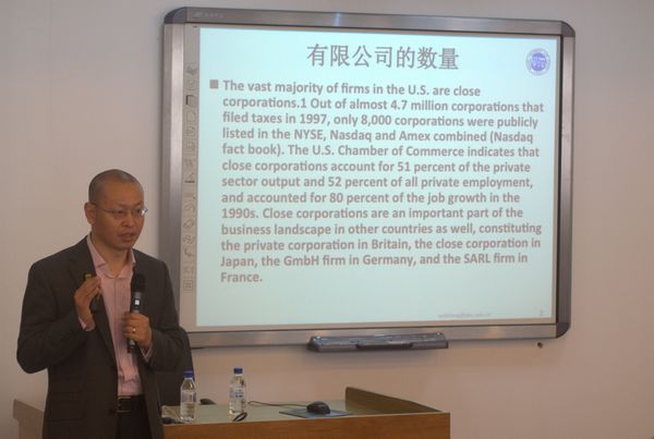 学生汇聚一堂,在经信卓越人才基地聆听了许德峰副教授“赌博的法律规制”和“民法案例研习的教学尝试”的主题演讲,由胡晓静副教授主持。许老师的演讲从身边小事随手拈来,运用语义分析方法和描述社会学方法,以小见大,有的放矢,而非泛泛空谈,体现了做理论终极目标——解释社会现象。这有赖于许老师对理论的深刻洞察和长期苦心孤诣的结果。随后,台湾色情
