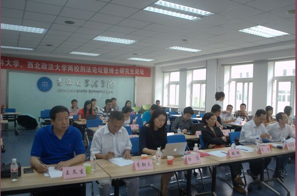 刑法学科李洁、张旭、徐岱、李韧夫、王文生、王志远、王充教授以及李綦通副教授;西北政法大学冯卫国、舒洪水教授、付玉明、郑艳馨、赵晓风、肖楠等十位老师参加了本次论坛。此次论坛主题为:刑法控制的边界;食品安全犯罪问题研究,分上下午进行。