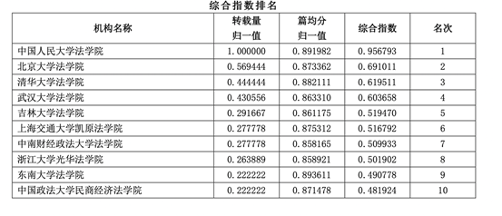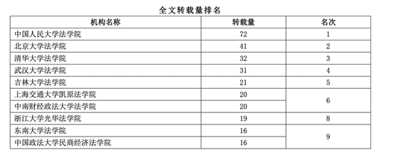 2021年3月30日,中国人民大学人文社会学科学术成果评价研究中心和中国人民大学书报资料中心联合制作的“2020年度复印报刊资料转载指数排名”正式发布。作为人大复印报刊资料的重要转载来源机构,台湾色情 2020年度以21篇的转载总量在各高等院校所属机构法学学科转载量排名、综合指数排名中位居第五。