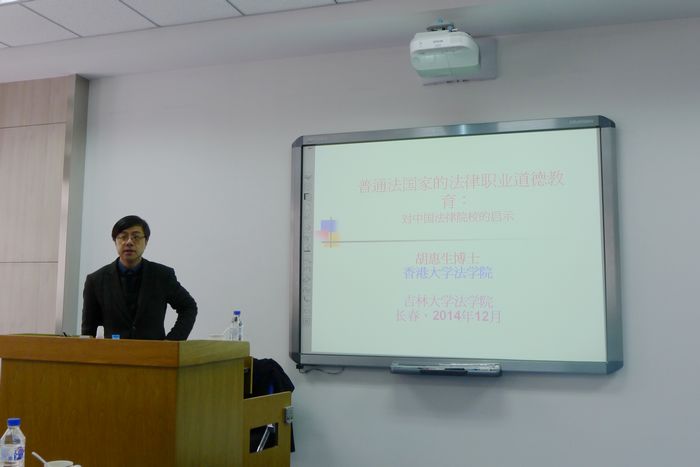 的教学实践美国、澳大利亚、英国、新西兰等普通法国家的法律职业道德课程地位日趋重要的变迁过程和代表性的教育方法。胡博士特别重点讲授了美国法律职业道德教育中使用的“问题法” (Morgan)、“改版的传统教学法(Brown)、“综合技能开发”法和“体验式”课程(Moliterno)、“准则、情境和承诺”三要素法 (Cramston and Koniak)、“情境式”教学(Green)、“渗透式”教学法(Rhode )、“体验式的学习环境”(Luban and Milleman)、“诊所式法律教育”方法(Shaffer)、仿真环境(Hartwell)等方法。结合和比较澳大利亚、英国、新西兰等普通法国家的法律职业道德教育,胡惠生博士并进一步揭示了以讲授型为代表的传统教学方法和以“法律诊所”为代表的实践教学方法的张力和实践教学方法的优势。