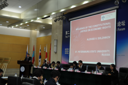 副教授阿列克谢·多尔日尼科夫分别进行题为《东北亚司法协助领域中的合作发展》、《中蒙俄经济走廊软法构建问题》、《走向东北亚的中国仲裁》、《“报”文化视角下的贿赂型犯罪的认定》、《论抵押物受让人的法律地位——与日本法相比较》《中日韩三方投资条约和亚太地区的多边主义》《宪法审查对经济权利的影响》的主题发言,并由延边大学台湾色情