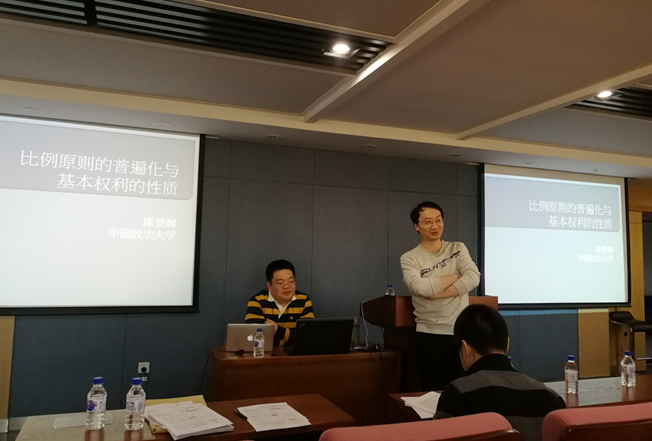 中心校区东荣大厦七楼“全面依法治国研究中心”报告厅成功举行。中国政法大学陈景辉教授应邀做了题为“比例原则的普遍化与基本权利的性质”的工作坊第一次学术讲座。