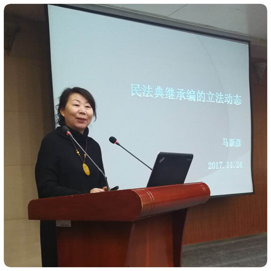 在会议主旨发言阶段,中国民法学研究会副会长、吉林省法学会民法学研究会会长、中国法学会民法典编纂项目民法分则继承编专项课题组负责人(之一)马新彦教授,就民法典继承编的立法动态作了全面深刻的主旨发言。在发言中,马新彦教授对继承编编纂的工作现状进行了介绍,并就民法典继承编有关遗产范围、数人于同一事件中死亡时间的认定、父母法定继承的顺位、继子女继父母之间的继承权、丧偶儿媳与女婿的继承权、酌情分得遗产的情形、遗嘱人的行为能力、继承协议,以及继承份额的酌减等十个重点问题进行了详细的分析和阐释。认为,在人们的财富观、婚姻观、价值观都发生巨大变化的今天,为适应时代的发展需要,民法典继承编在民法典各编的编纂中将最具有创新性贡献。