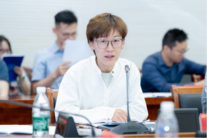 教授)对本单元前两位汇报人的发言分别进行了细致的点评。她指出两篇论文的选题均具有新颖性。第一篇文章的部分命题论证需考量。比如第一个路径中,司法机关通过媒体设置议题消解非理性舆论,提到“将理性的民意表达适当吸纳为裁判的依据与理由”,那么谁来确认理性的民意?吸纳是否考虑当事人影响?如何设置议题?这些问题需要进一步求证。第二篇文章中算力财产权是宪法上的基本权利还是民法上的财产权利?若是宪法基本权,是否应从宪法层面论证?若是民法财产权,需论证算力财产权与传统民法财产权的差异,同时,需要对采取法律解释模式还是立法设定新权利的模式进行进一步研究。